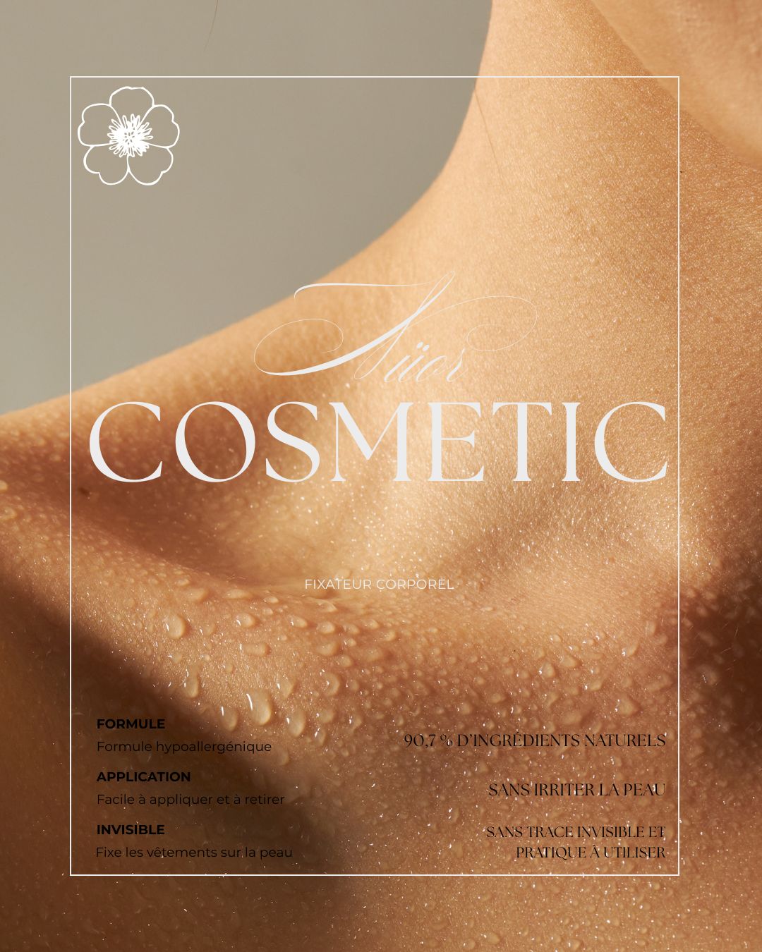 Une formule douce et transparente qui maintient les vêtements directement sur la peau, tout en respectant sa sensibilité.